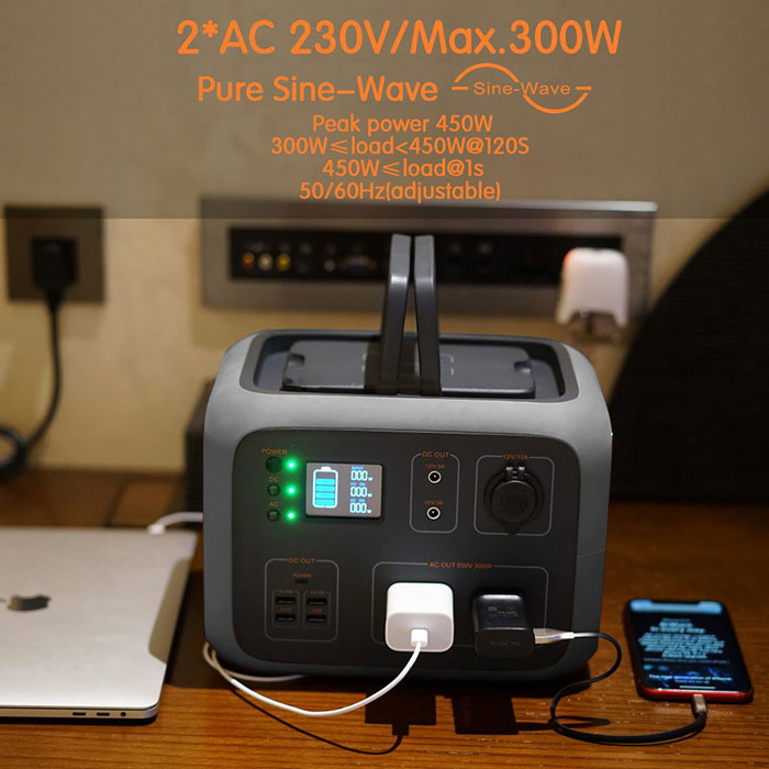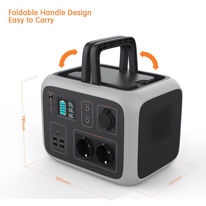 Suministro de enerxía de xerador portátil de 500Wh con bastante inverter CC / CA de 300W, saídas DC / AC / USB para viaxes ao aire libre