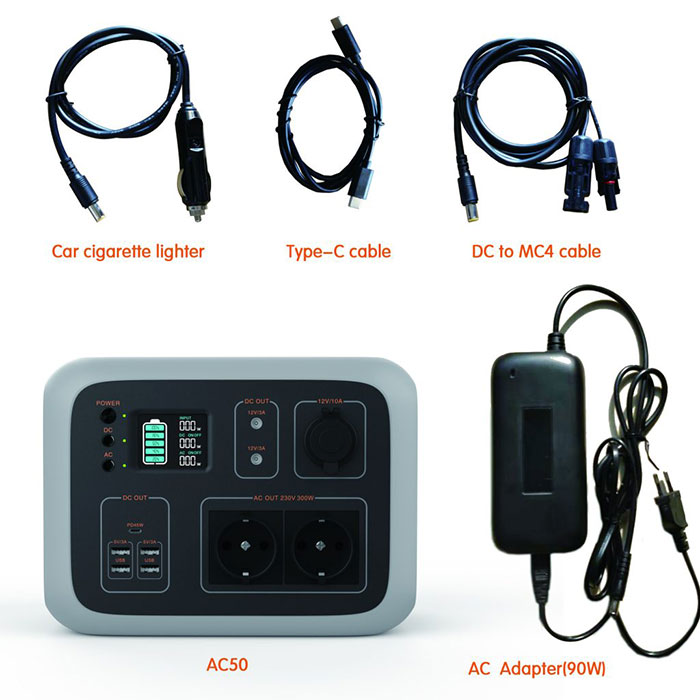 Capacidade de sobrecarga 120% Certificado: CE RoHS IEC Nome da marca: ALL IN ONE Aplicación: HOME Especificación: MINI Carga PV: MPPT 120W / 4H Parrillada / Desactivación da grella: Apagado Tamaño do produto: 260 * 200 * 196mm Peso: 6,5Kg Nome do produto Xerador solar portátil AC50 Material ABS + PC Función Xerador solar portátil Paquete caixa de cores na caixa do cartón
